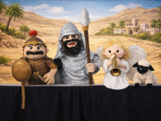 하나님을 믿는 용감한 다윗어느 날 형들을 만나러 전쟁터로 심부름을 간다.골리앗 장수와 다윗 소년의 한판 승부! 앗 큰일이야 골리앗은 너무 크고 힘이센 장수다.하지만 다윗은 사자도 이겼어요.하나님은 다윗 편이예요.물맷돌을 빙빙 돌려요.슝 슝 슝 날아간다....와! 골리앗이 쓰러졌다! 다윗 만세! |